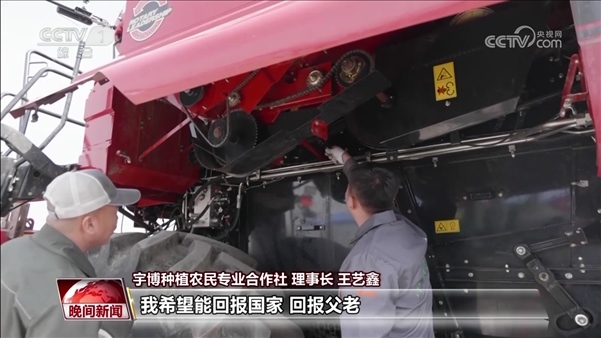 宇博種植農(nóng)民專業(yè)合作社 理事長 王藝鑫:我就和父母說了我的想法,父母也非常了解當(dāng)時農(nóng)業(yè)的形勢,也都挺同意我的想法的。因為現(xiàn)在有很多新型的種地方式和新型農(nóng)機具,年輕人可以研究研究這個新型種地方式,這樣也能使這個糧食產(chǎn)量得到提高,這不也屬于為家鄉(xiāng)作貢獻嘛。