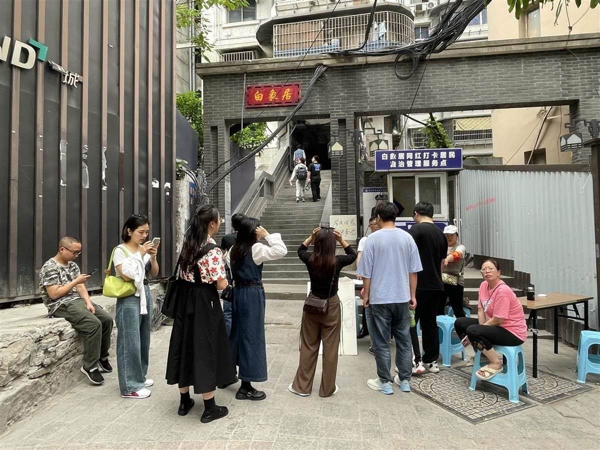 情況說明還顯示,因外來游客太多,居民不堪其擾,5月23日下午,小區(qū)居民自發(fā)組織“居民自治小組”在白象居大門設(shè)置“居民住宅,謝絕參觀”字牌進(jìn)行訪客準(zhǔn)入登記,自發(fā)維護(hù)白象居居民樓內(nèi)部秩序管理,維護(hù)小區(qū)安寧。目前,白象街社區(qū)居委會已介入居民自治小組的協(xié)調(diào)工作,力爭在游客參觀和居民訴求之間找到一個平衡點(diǎn)。