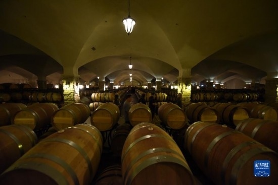 6月21日,在河北省懷來縣長城桑干酒莊,游客在葡萄酒庫中參觀。