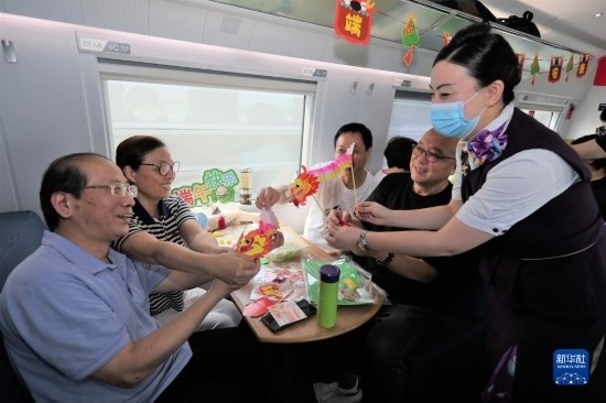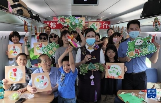 端午節(jié)前夕,鐵路上海客運段在列車上邀請旅客參加端午民俗活動,迎接端午佳節(jié)。