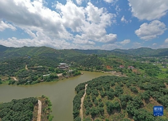 這是6月27日拍攝的廣西北流市北流鎮(zhèn)六行村的連片荔枝樹(shù)(無(wú)人機(jī)照片)。