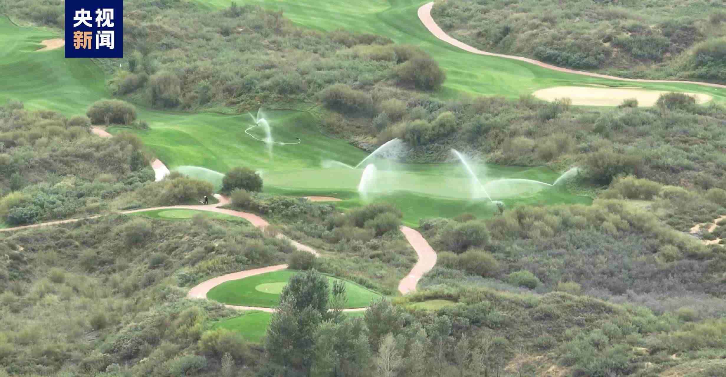 9月11日,中央廣播電視總臺(tái)記者在陜西省榆林市實(shí)地采訪調(diào)查發(fā)現(xiàn),在距離榆林市區(qū)西北方向16公里的榆林沙地森林公園內(nèi),一個(gè)名為“綠淘沙 大漠生態(tài)城”的項(xiàng)目里,一座占地近3000畝的高爾夫球場(chǎng)正在營(yíng)業(yè)。