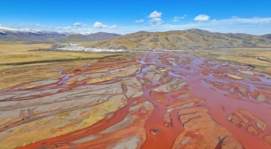 青海玉樹:楚瑪爾河水位下降 河道蜿蜒似大地“脈絡”。