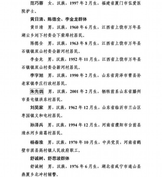 上榜勇士中,有從高橋上跳水救人導(dǎo)致胸椎骨折的外賣小哥彭清林和另一位高橋跳水救人的中學(xué)教師丁成闖;有冒著9級大風(fēng)在海上營救遇險臺胞的漁民蔡芳輪、蔡勝利;有放棄登頂珠峰機(jī)會而救助同胞的珠峰登山隊(duì)隊(duì)員范江濤、謝如祥;有萬米高空機(jī)艙里搶救瀕危病人的護(hù)士長劉素琴;有勇斗盜賊被刺幾刀仍不退縮的江蘇村民李培武;有身患癌癥卻橫渡淥江河救人的樂觀大姐鐘慧慈;有跳進(jìn)充滿沼氣深井救人致多器官感染的山東小伙李字旭;更有冒死救援落水群眾壯烈犧牲的潘燦燦、朱先鴿、尹新朋、喬軍、徐毅暉、楊華清、陳江七位勇士,讓我們致以最崇高的敬意!
