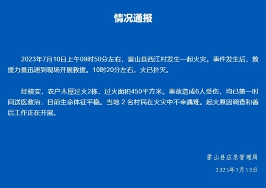 ·貴州西江千戶苗寨景區(qū)發(fā)生火災,官方通報:兩人不幸遇難。