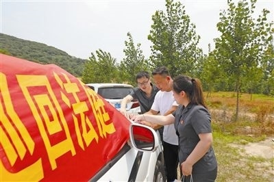 “現(xiàn)在開庭!”隨著審判長的一聲令下,這場(chǎng)以青山為背景、警車為審判臺(tái)、黃土地為審判場(chǎng)的“別樣”庭審正式落槌!近日,山東省莒南縣人民法院環(huán)境資源審判庭的法官冒著酷暑來到坊前鎮(zhèn)李家崖村,對(duì)被告人李某非法占用農(nóng)用地刑事附帶民事公益訴訟案件進(jìn)行開庭宣判,并現(xiàn)場(chǎng)監(jiān)督被告人對(duì)破壞的土地進(jìn)行徹底修復(fù)。