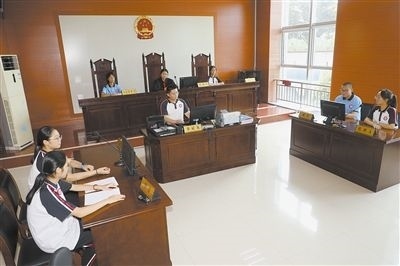 “現(xiàn)在開(kāi)庭……”隨著審判員敲響法槌,庭審拉開(kāi)帷幕,學(xué)生們?cè)谂月?tīng)席上“零距離”感受庭審,對(duì)庭審流程及程序有了直觀的了解。