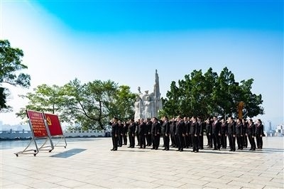 “我志愿加入中國共產(chǎn)黨,擁護(hù)黨的綱領(lǐng),遵守黨的章程……”今年7月,百色市中級(jí)人民法院黨員到百色起義革命烈士紀(jì)念碑廣場(chǎng)開展黨日活動(dòng),緬懷革命先烈,重溫入黨誓詞。鏗鏘的誓詞,久久回蕩在紀(jì)念碑上空,銘刻在每一個(gè)人的心頭。