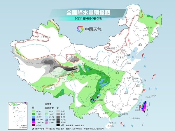 中國(guó)天氣網(wǎng)訊 今天(10月3日)白天,華西地區(qū)降雨將有所減少、減弱,但今夜起新一輪降雨過(guò)程又將開(kāi)啟,部分地區(qū)有大雨,局地暴雨;同時(shí)青海、甘肅局地有暴雪或大暴雪,需注意防范。氣溫方面,東北地區(qū)等地未來(lái)三天將出現(xiàn)降溫。5日至7日,南方氣溫也將下滑,暑熱緩解。