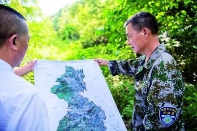 湖南省長(zhǎng)沙市瀏陽(yáng)市金剛鎮(zhèn)林長(zhǎng)制專職護(hù)林員在記錄古樹(shù)生長(zhǎng)情況。新華社發(fā)