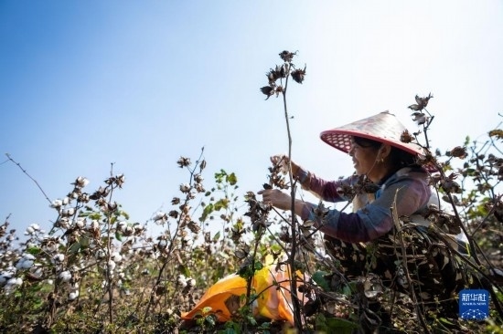 10月15日,棉農(nóng)在南縣浪拔湖鎮(zhèn)太陽山村采收棉花。