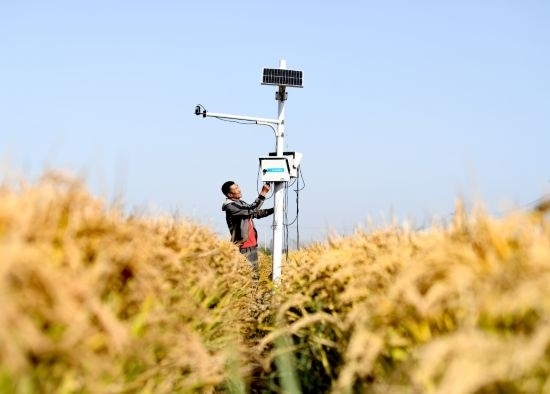 10月15日,樂亭縣數(shù)字循環(huán)現(xiàn)代農(nóng)業(yè)園區(qū)內(nèi),工作人員在調(diào)試監(jiān)測(cè)設(shè)備。(受訪單位供圖)