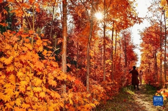 10月19日,游人在長春市百木園內(nèi)觀賞秋景。