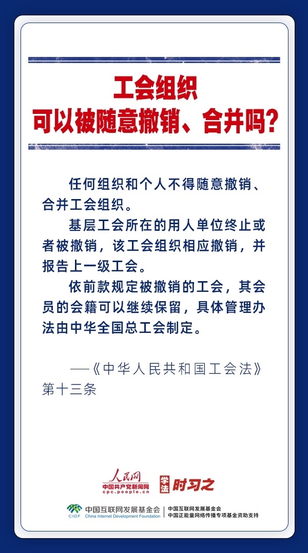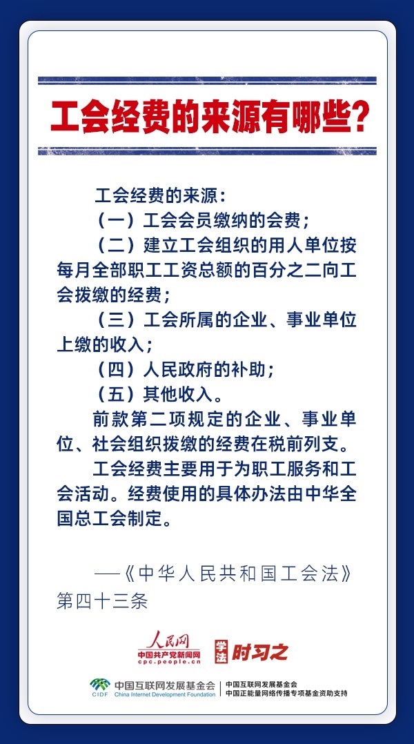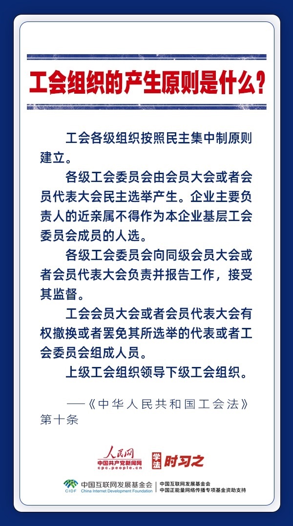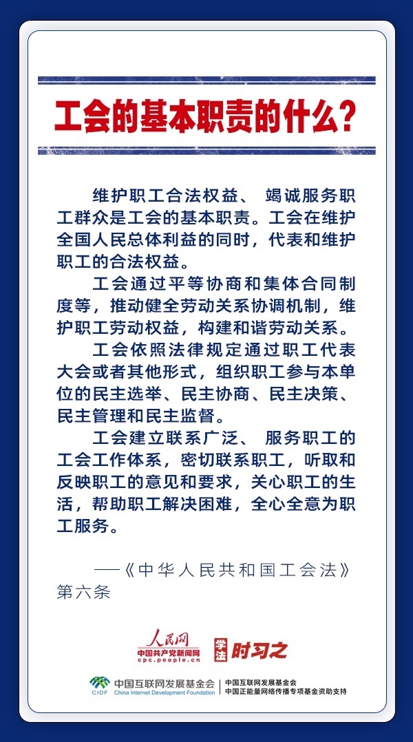 日前,中華全國總工會(huì)新一屆領(lǐng)導(dǎo)班子產(chǎn)生。黨和政府歷來重視工會(huì)的地位作用,十分注重加強(qiáng)工會(huì)法律制度建設(shè),專門為廣大職工制定了《中華人民共和國工會(huì)法》。網(wǎng)約車司機(jī)、快遞員、外賣配送員能入工會(huì)嗎?產(chǎn)業(yè)工人隊(duì)伍建設(shè)改革的目標(biāo)是什么?企業(yè)開會(huì)討論哪些事項(xiàng)必須有工會(huì)代表參加?一起來了解。
