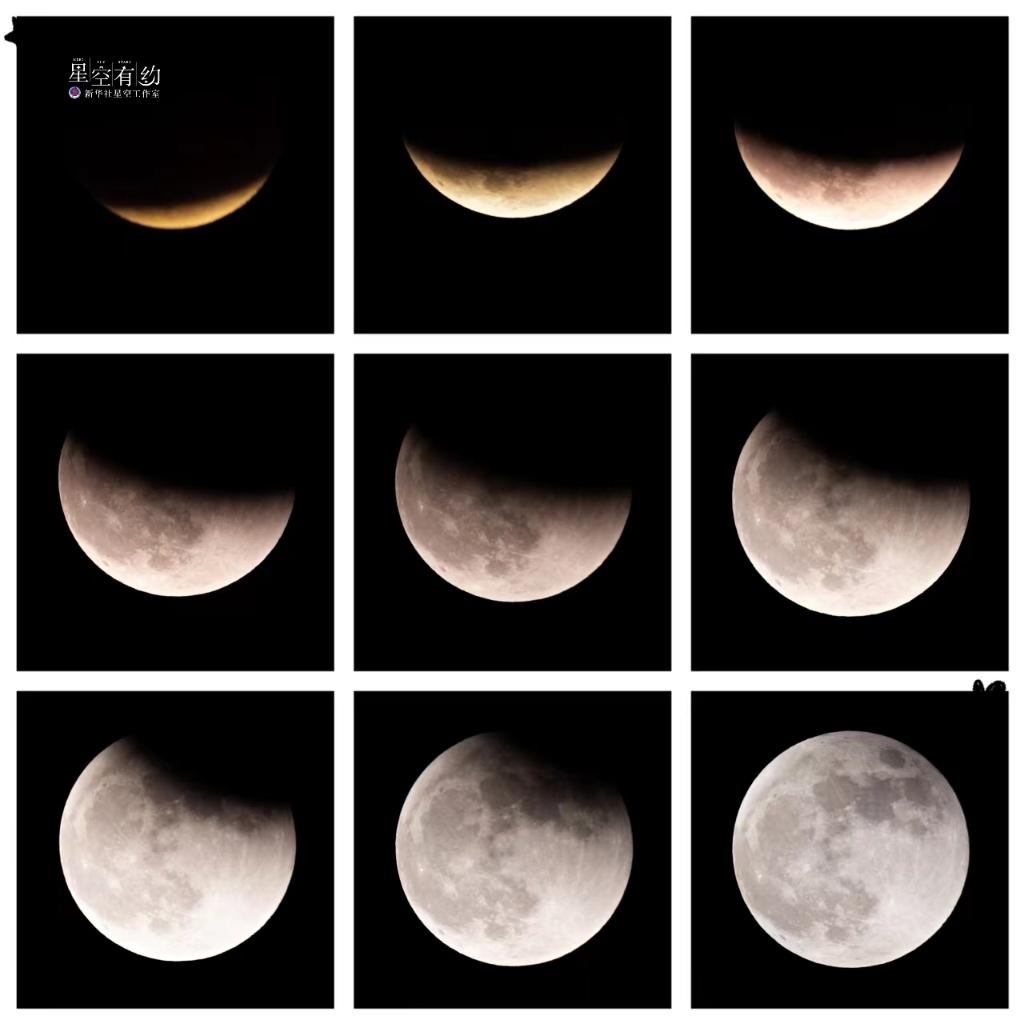 北京星空攝影愛(ài)好者浦石2021年11月19日在山東威海拍攝的月偏食(拼版)。(本人供圖)