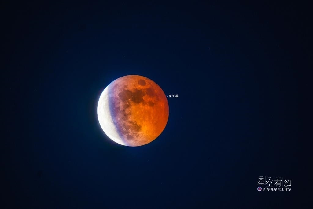 云南星空攝影愛(ài)好者張釗海2022年11月8日在云南昆明拍攝的月偏食與天王星“同框”。(本人供圖)