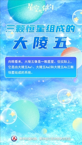 中國科學(xué)院紫金山天文臺科普主管王科超說,在人們?nèi)庋劭磥恚罅晡逯皇乔锛緰|北方向天空中一個遙遠(yuǎn)的亮點,像是一顆星星。但實際上,它是由大陵五Aa1、大陵五Aa2和大陵五Ab三顆恒星組成的系統(tǒng)。這三顆恒星被引力“束縛”在一起,共同組成大陵五這個三合星系統(tǒng)。系統(tǒng)之中三顆星的相對位置還會發(fā)生變化,并影響到大陵五的亮度。天文學(xué)上把這種亮度時常變化的恒星或恒星系統(tǒng)稱作變星。大陵五也是秋季星空著名星座英仙座中的第二亮星。