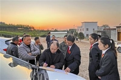 考慮到目前農(nóng)村建房施工矛盾糾紛普遍發(fā)生,為達(dá)到“審理一案,教育一片”的普法效果,近日,廣西壯族自治區(qū)象州縣人民法院石龍人民法庭干警來(lái)到象州縣馬坪鎮(zhèn)新圩村,巡回審理一起農(nóng)村建房施工合同糾紛案,并邀請(qǐng)當(dāng)?shù)卮迕衽月?tīng)庭審。