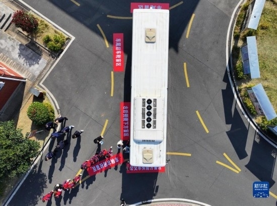 12月1日,在長沙市望城區(qū)新河學(xué)校,學(xué)生參加汽車盲區(qū)體驗(yàn)活動(無人機(jī)照片)。