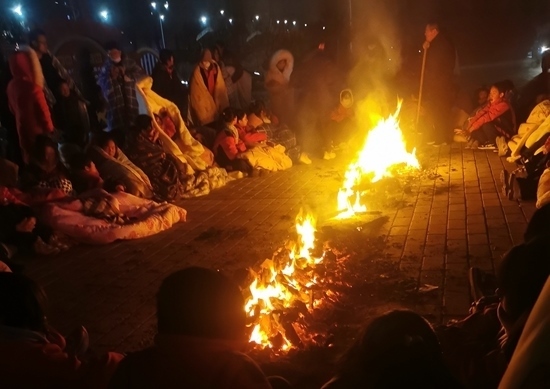 估摸著地震過(guò)去了,老師們跑回宿舍,為學(xué)生抱來(lái)被子,又找到些廢舊桌凳,試著燒火取暖。與此同時(shí),學(xué)校與學(xué)生家長(zhǎng)取得聯(lián)系,陸續(xù)有學(xué)生被接走。走的人要拍一張照片發(fā)到班級(jí)群里,確認(rèn)安全。