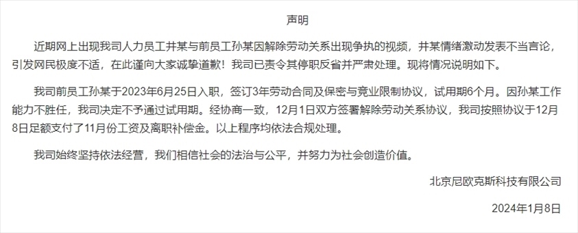 ·女高管違法開(kāi)除員工?涉事公司發(fā)布情況說(shuō)明。