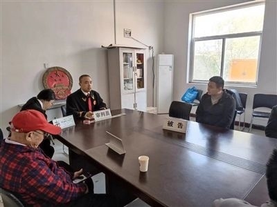 圈頭法庭法官入村審理一起財產(chǎn)損害賠償糾紛案。 曲東哲 攝