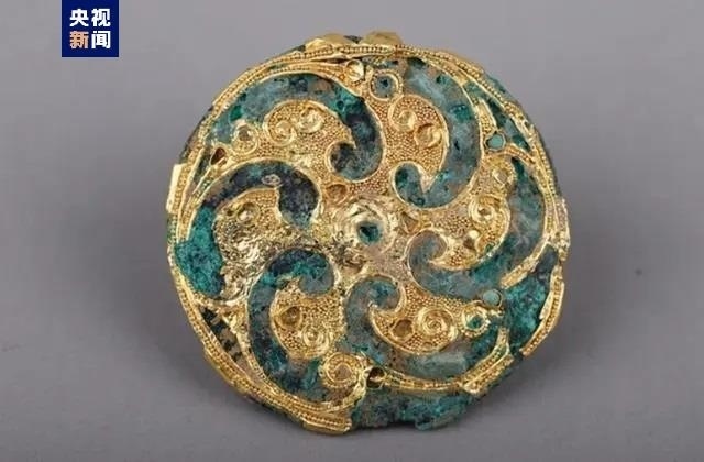 在M1的120余件出土器物中,還有制作精美的銅包金牌飾、金“五朱”等裝飾品,以及色澤瑩潤的玉帶鉤、玉劍璏(固定在劍鞘上,供穿系革帶以聯(lián)結(jié)腰間的器物)等玉器。不過,根據(jù)玉帶鉤、玉劍璏的樣式,考古工作者判斷,它們并非當時的器物,而是戰(zhàn)國時期的物件,有可能是墓主人的“傳家寶”。