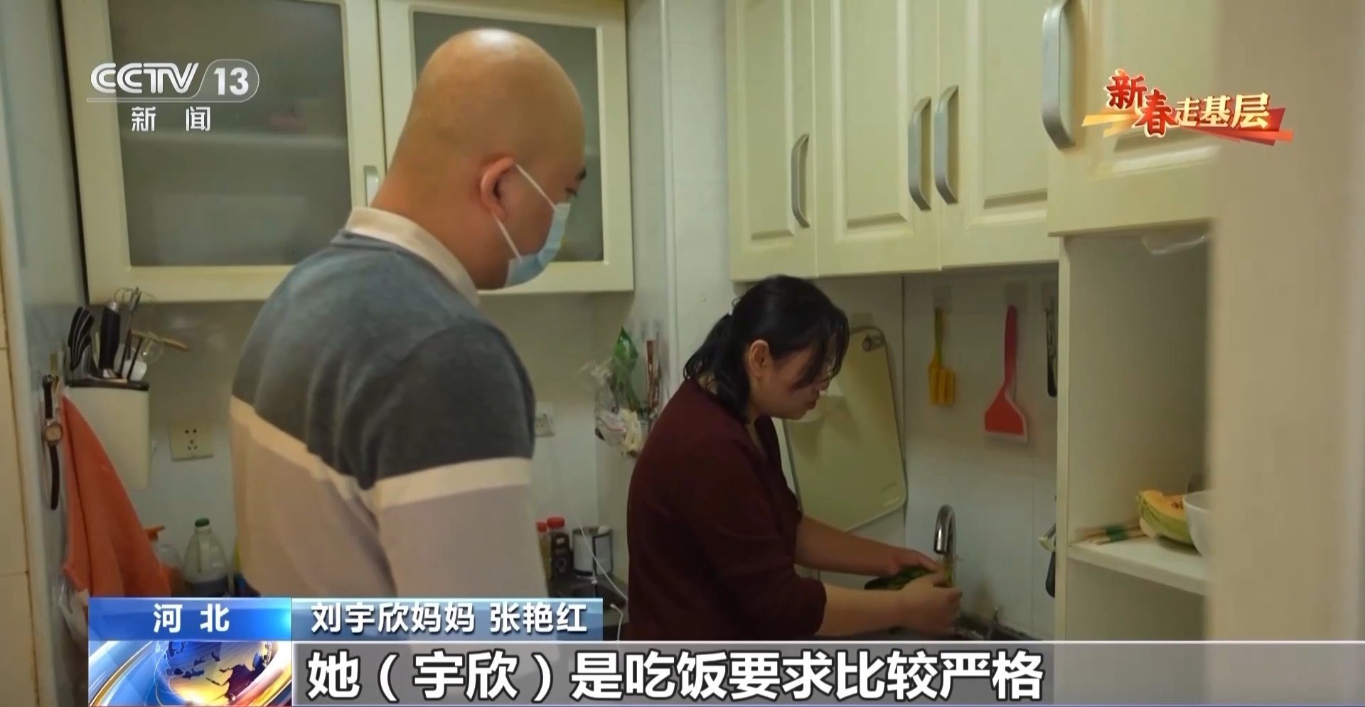劉宇欣媽媽 張艷紅:宇欣吃飯要求比較嚴(yán)格,洗菜的時(shí)候要洗得特別干凈。一般都得洗個(gè)三遍以上才能干凈,因?yàn)橛幸稽c(diǎn)細(xì)菌都不行。感覺時(shí)間特別緊,她吃完上頓你要準(zhǔn)備下頓的。