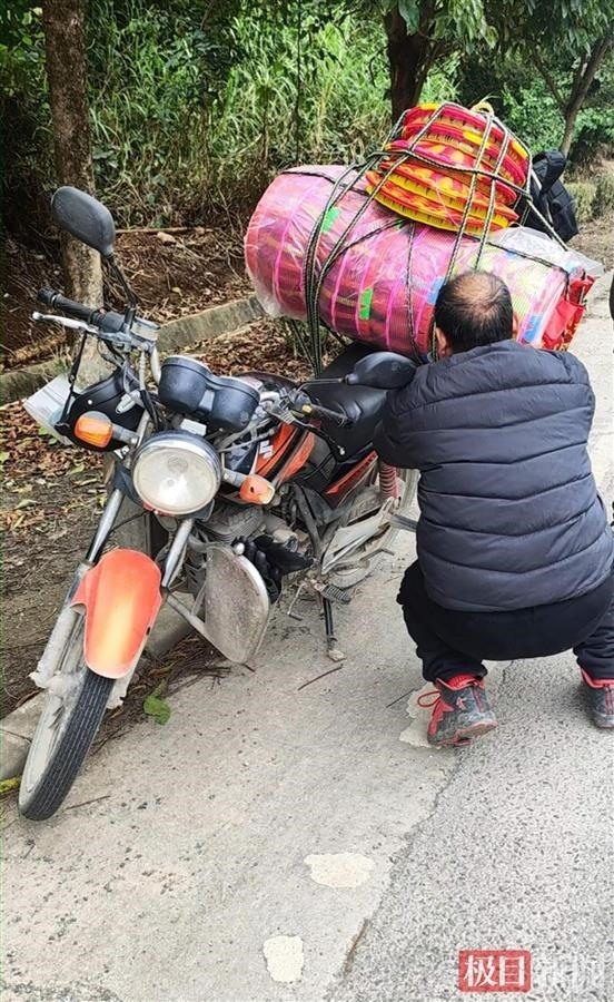 由于家里經(jīng)濟條件不好,我15歲時離開了家鄉(xiāng),到廣東肇慶、中山一帶打工,當(dāng)時一直在工地上打混凝土。我和妻子是經(jīng)老鄉(xiāng)介紹認(rèn)識的,2007年,她在中山一家鞋廠上班。我們是同鄉(xiāng),雙方性格又合適,第二年就結(jié)婚了?!蓖粽晗驑O目新聞記者介紹,2008年,他在肇慶買了人生中第一輛摩托車,花費了約2800元,此后的三年,他們夫妻倆和幾名老鄉(xiāng),都是騎摩托車回老家。