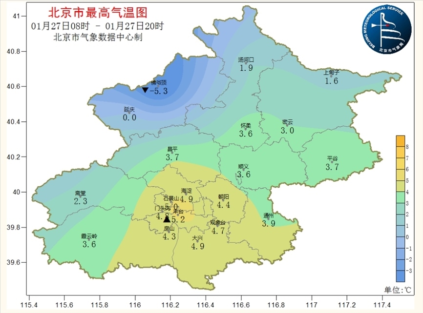 南郊觀(guān)象臺(tái)從1月29日到2月6日最高氣溫0~4℃,最低氣溫-8~-4℃。