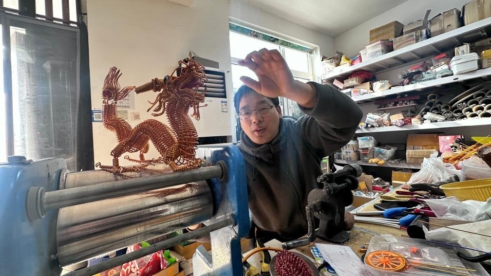 在村民楊訓(xùn)政不大的鋁編工作室內(nèi),簡(jiǎn)易貨架上一排排銅色鋁線編制成的藝術(shù)品讓人目不暇接。一條條鋁制彈簧經(jīng)過(guò)村民巧妙處理后,成了工藝品市場(chǎng)的搶手貨:發(fā)財(cái)樹、恐龍、摩托車、機(jī)器人……“我這鋁編雖然產(chǎn)量低、規(guī)模小,訂單可已經(jīng)排到了今年10月底。龍年將至,來(lái)自海內(nèi)外的訂單讓大家年前忙得不亦樂(lè)乎。”楊訓(xùn)政一邊用鉗子擺弄著鋁編小龍,一邊告訴記者。