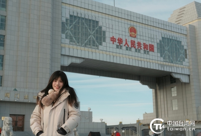 1月27日,2024年全國臺聯(lián)第三十屆臺胞青年冬令營內(nèi)蒙古分營一行人前往中俄第五代國門參訪,陳紀陵于中俄第五代國門前“打卡”留念。(臺灣同學 王奕勛 攝)