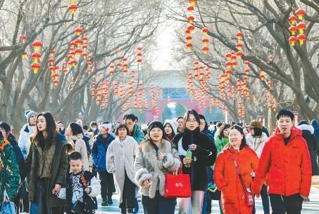 來自北京市公園管理中心的消息顯示,大年初一,25.51萬人次暢游市屬公園,游客量同比去年增加153.78%,較2019年增加56.41%。