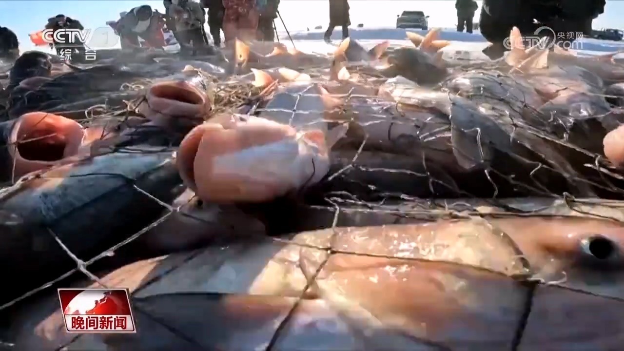 90后姑娘曲麗杰,早已在網(wǎng)前等候。查干湖盛產(chǎn)的68種魚中,花鰱最為有名,也就是人們常說的胖頭魚。