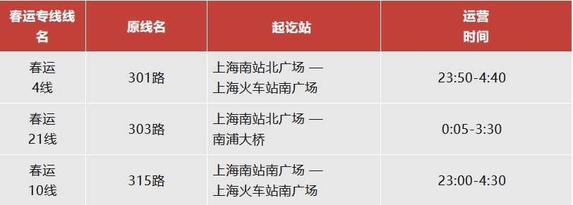 注:上海南站春運(yùn)專線運(yùn)營日期為2月14日至3月5日。
