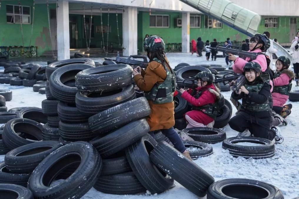 “前方障礙物發(fā)現(xiàn)敵情!”“快隱蔽!”……冬日的沈陽寒風襲人,在沈陽市渾南區(qū)第九小學操場上,30名小學生分成兩組,身著CS裝備,正在激烈“戰(zhàn)斗”。在一系列奔跑、跳躍、匍匐中,孩子們既能強身健體,也增強了團隊協(xié)作能力。