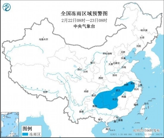 預計,2月22日8時至23日8時,陜西南部、安徽中部、湖北中東部、四川盆地東北部以及西藏東部、青海南部、云南西北部等地部分地區(qū)有大雪,其中,西藏東南部、湖北東部等地部分地區(qū)有暴雪(10~15毫米)。上述部分地區(qū)新增積雪深度3~6厘米,局地可達8~10厘米;安徽中南部、江蘇西南部、浙江西北部、湖北中東部和南部、湖南大部、江西西北部、貴州東部、重慶東南部等地的部分地區(qū)有凍雨或冰粒,凍雨量1~5毫米,局地10毫米以上。中央氣象臺2月22日6時繼續(xù)發(fā)布暴雪黃色預警和冰凍黃色預警。廣西東北部、湖南南部、江西中北部、浙江、福建西北部、廣東中西部和西南部沿海等地的部分地區(qū)有中到大雨,局地伴有雷暴。