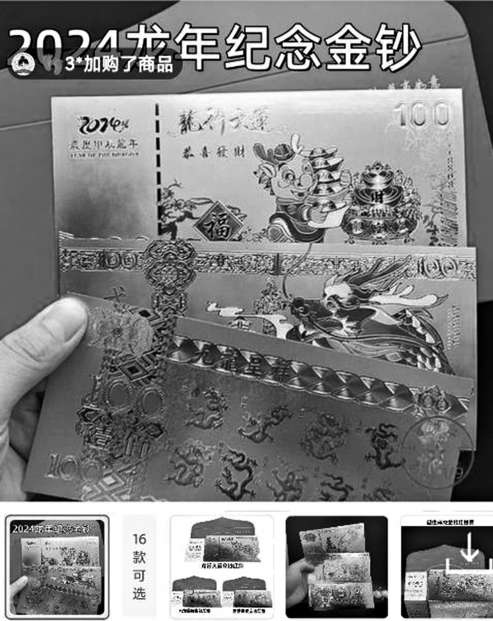 春節(jié)期間,互聯(lián)網(wǎng)平臺上出現(xiàn)了不少“賣錢”的直播間。各類以龍為主題的“紀(jì)念鈔”“紀(jì)念幣”“紀(jì)念券”花樣頻出,應(yīng)時應(yīng)景,再配上精美的包裝,被宣稱為“升值潛力巨大”。然而,它們究竟價值幾何、內(nèi)里貓兒膩普通人尤其是老人很難分辨,稍不留神,就會踩坑。