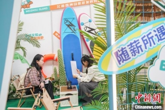 綠植、鮮花、槳板、布氏鯨、海島咖啡……廣西北海市潿洲島旅游區(qū)的招聘展臺(tái)呈現(xiàn)了一個(gè)微縮版的景區(qū)場(chǎng)景,當(dāng)日吸引2100人現(xiàn)場(chǎng)面試。