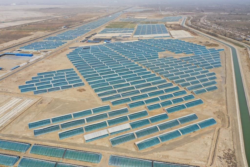 這是3月24日拍攝的新疆阿克蘇市阿依庫勒鎮(zhèn)蔬菜基地(無人機照片)。新華社記者 丁磊 攝