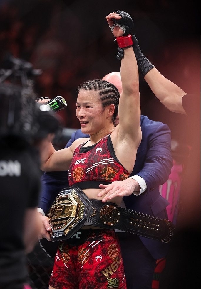 北京時(shí)間14日,UFC(終極格斗冠軍賽)史上首次“中國(guó)德比”冠軍戰(zhàn)在美國(guó)拉斯維加斯上演。兩位選手?jǐn)y手奉獻(xiàn)了一場(chǎng)精彩的比賽,經(jīng)過(guò)五回合鏖戰(zhàn),張偉麗戰(zhàn)勝閆曉楠,成功衛(wèi)冕女子草量級(jí)金腰帶。