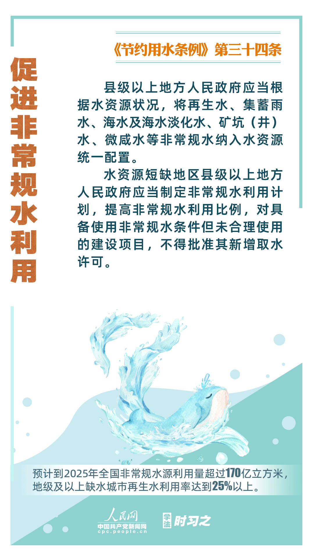 《節(jié)約用水條例》(以下簡(jiǎn)稱《條例》)將于2024年5月1日起施行,這是我國首部節(jié)約用水行政法規(guī)。節(jié)約用水,是解決我國水資源短缺問題的根本措施,《條例》以水資源可持續(xù)利用為目標(biāo),建立健全節(jié)水制度政策體系,以法治方式和法治途徑實(shí)現(xiàn)水資源節(jié)約集約高效利用,促進(jìn)全社會(huì)節(jié)約用水。