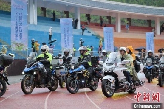 隨后,“5·17”騎行季活動將現(xiàn)場氣氛推向高潮。伴隨著發(fā)車儀式的號令,800余輛機(jī)車轟鳴啟動,浩浩蕩蕩的車隊自縣城體育場出發(fā)前往圣堂山。騎行者們在青山綠水間享受著騎行運動的樂趣,感受美麗的杜鵑花海。