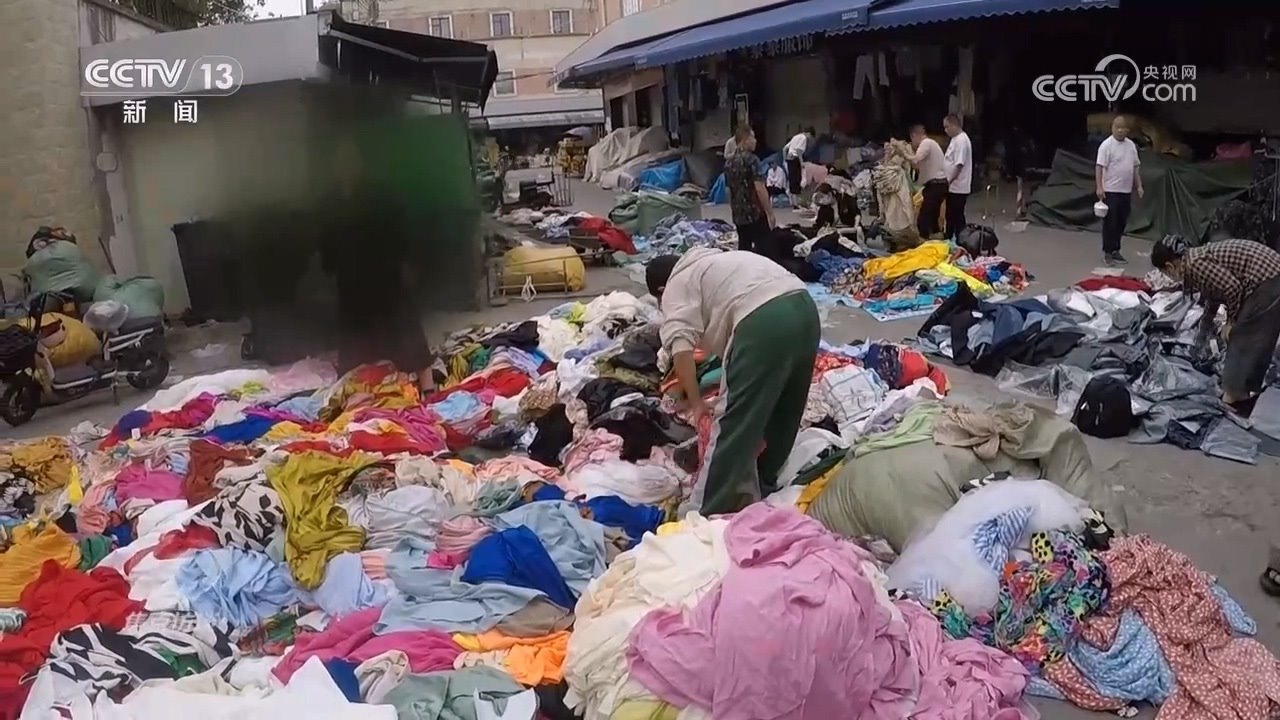 舊衣回收廠(chǎng)負(fù)責(zé)人:“好一點(diǎn)的精品,有很多直播間都從我們這里拿,自己掛上吊牌,然后說(shuō)是孤品,一樣一件,沒(méi)碼的?!?/p>