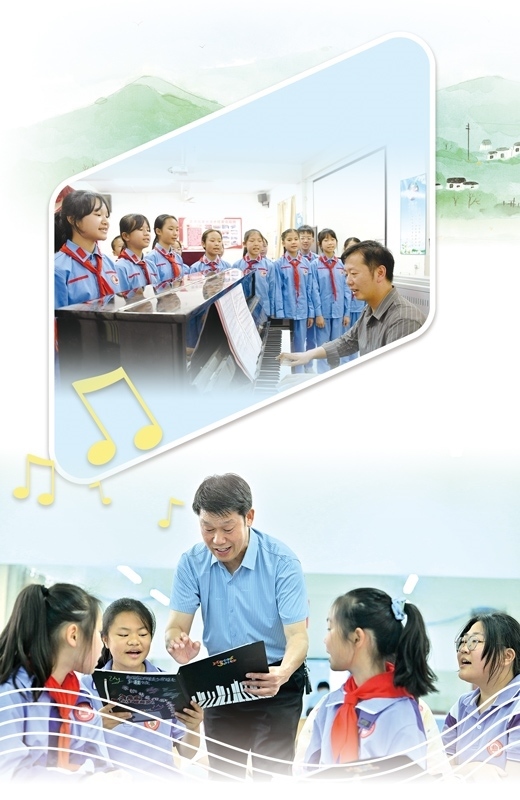 上圖:江西興國(guó)縣蕭華紅軍小學(xué)小紅星合唱團(tuán)正在練習(xí)。李 玲攝 下圖:湖北宣恩縣博雅實(shí)驗(yàn)學(xué)校土家娃合唱團(tuán)負(fù)責(zé)人廖光新在指導(dǎo)學(xué)生。陳緒開攝