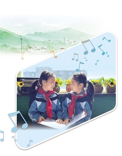 講臺(tái)上,隨著廖光新的雙手向前一打開,學(xué)生們齊刷刷地唱了起來(lái)?!敖裉焯鞖夂?,去找嘎嘎(外婆)嘍……”稚嫩而清脆的聲音瞬間充滿整個(gè)教室,透過(guò)窗戶傳向遠(yuǎn)處的大山。