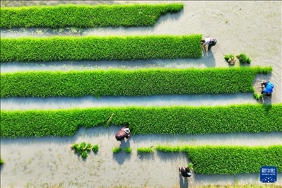 “三夏”時節(jié),綿陽市安州區(qū)秀水鎮(zhèn)石紅村一派忙碌景象。插秧機(jī)在田間穿梭,村民周啟軍忙著補栽秧苗?!白罱疃啵凑铡?jīng)紀(jì)公司’安排,除了農(nóng)忙插秧,下個月還得安裝路燈、修補堰塘?!崩现苷f。