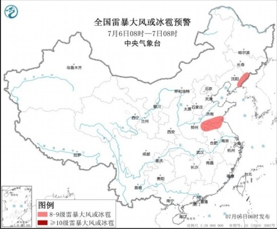全國(guó)雷暴大風(fēng)或冰雹預(yù)警(7月6日08時(shí)-7日08時(shí)) 圖源:中央氣象臺(tái)網(wǎng)站