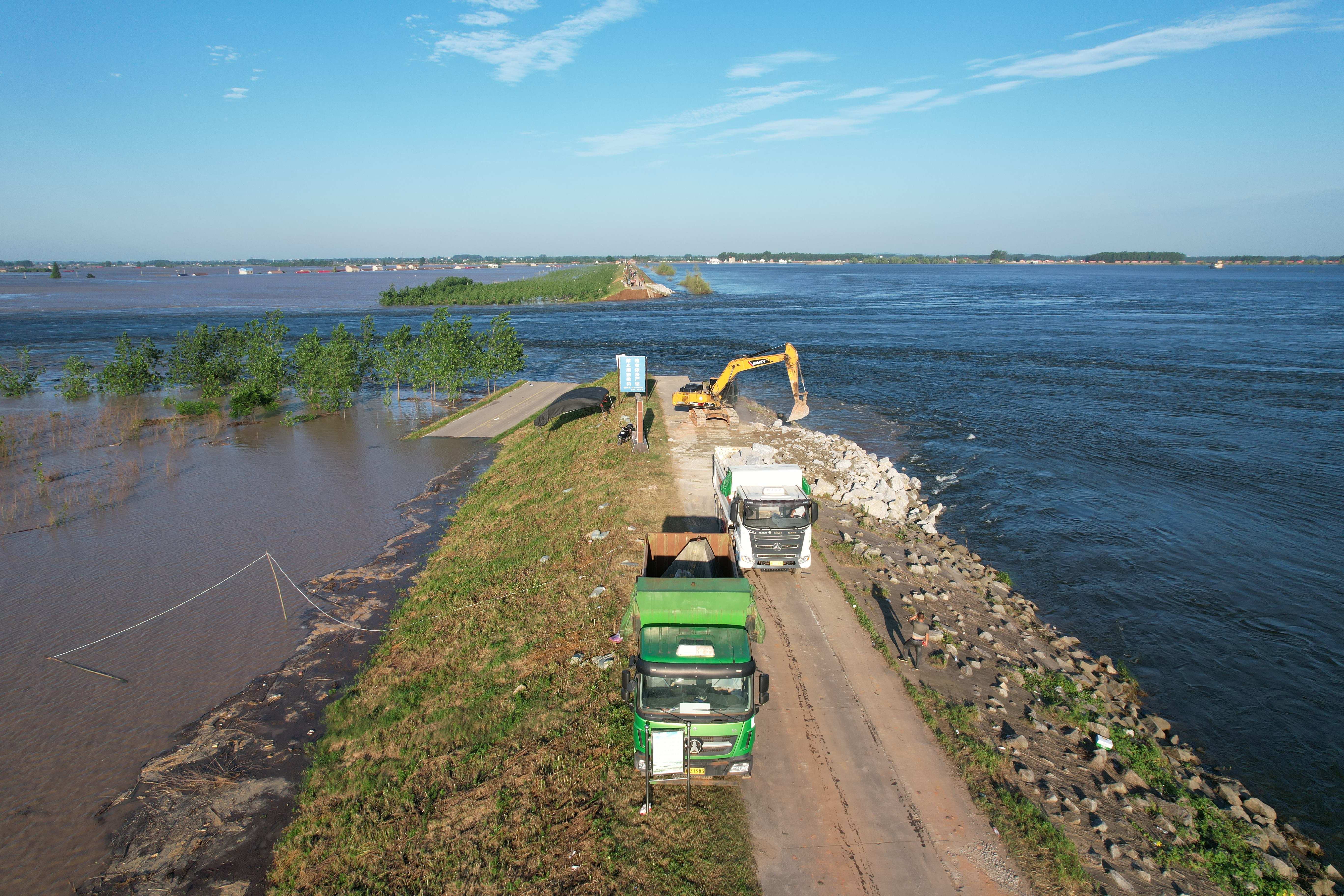 目前,前線(xiàn)正加緊組織工程機(jī)械加緊施工,在決口兩端建設(shè)4個(gè)倒車(chē)平臺(tái),并在決口兩端傾倒大型石塊,建設(shè)‘裹頭’,減緩水流對(duì)決口沖刷,防止決口擴(kuò)大。