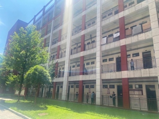 6日,湖南省岳陽市華容縣職業(yè)中專的宿舍樓里人來人往,有志愿學生在搬運物資,還有愛心機構(gòu)前來慰問。在這里,暫住著來自團北村和團洲社區(qū)的700多名轉(zhuǎn)移群眾。
